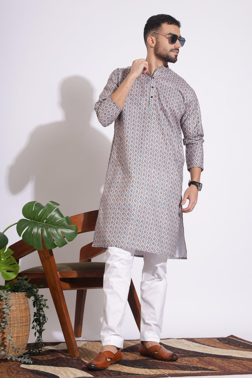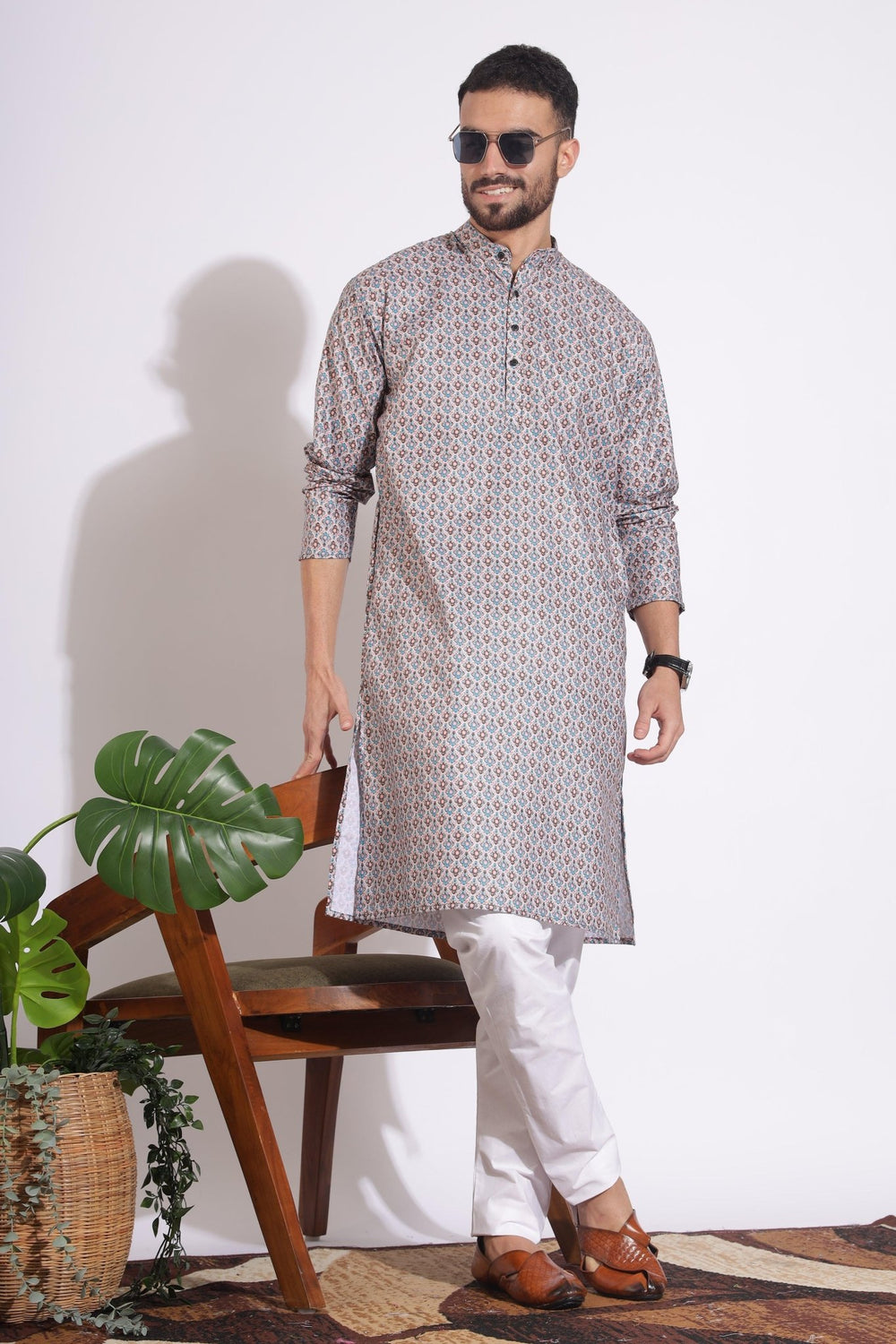 Fabulous Print Grey Color Kurta - Khadi Sadan