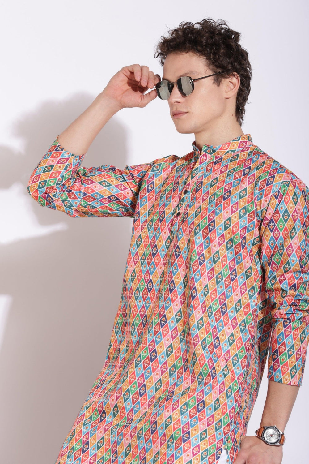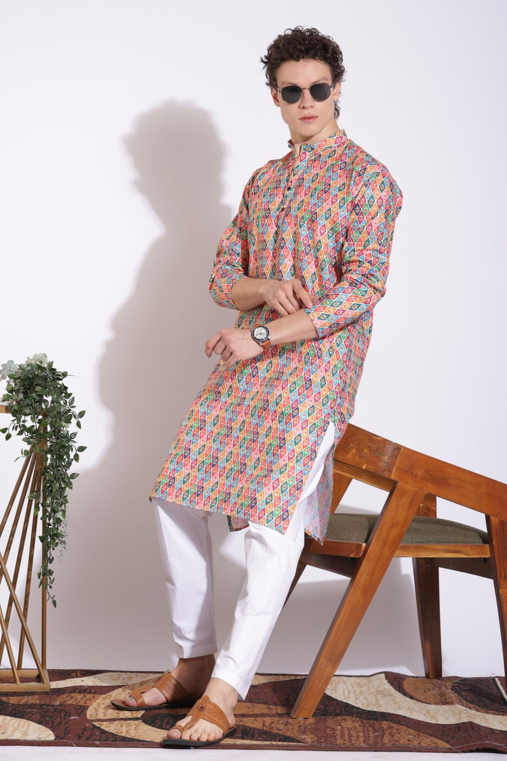 Classic Traditional Multicolor Print Kurta - Khadi Sadan