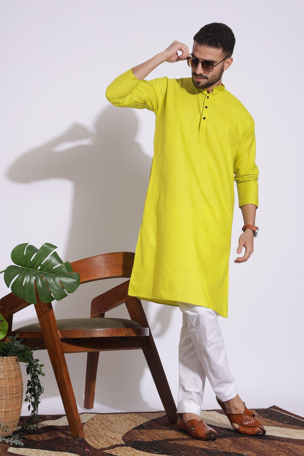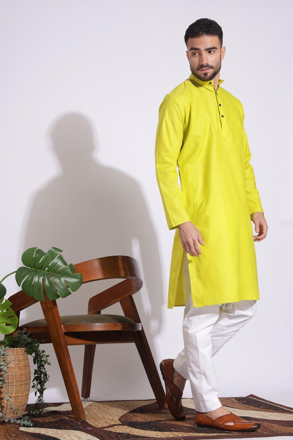 Elegant Plain Yellow Color Kurta - Khadi Sadan