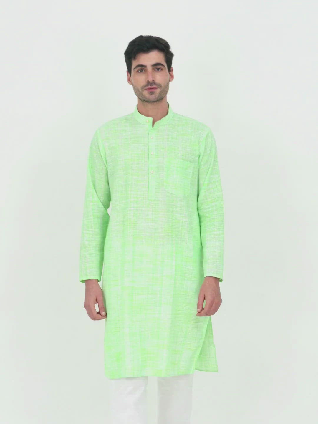 Green Khadi Cotton Kurta for Men - Breathable Fit - 44 - Khadi Sadan Skip to content