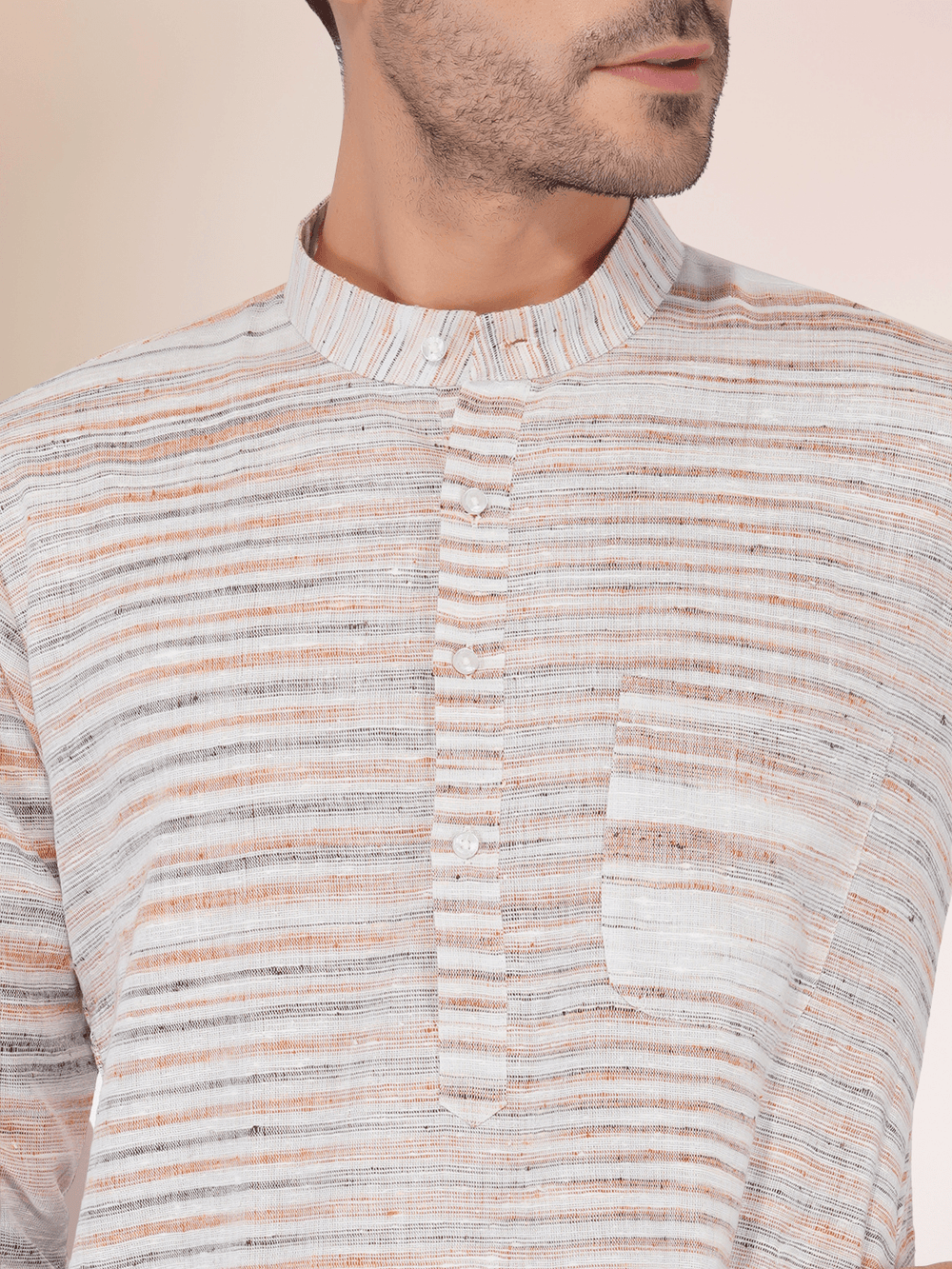 Khadi Traditional Kurta Off-White Blended with Brown Colour - Khadi Sadan