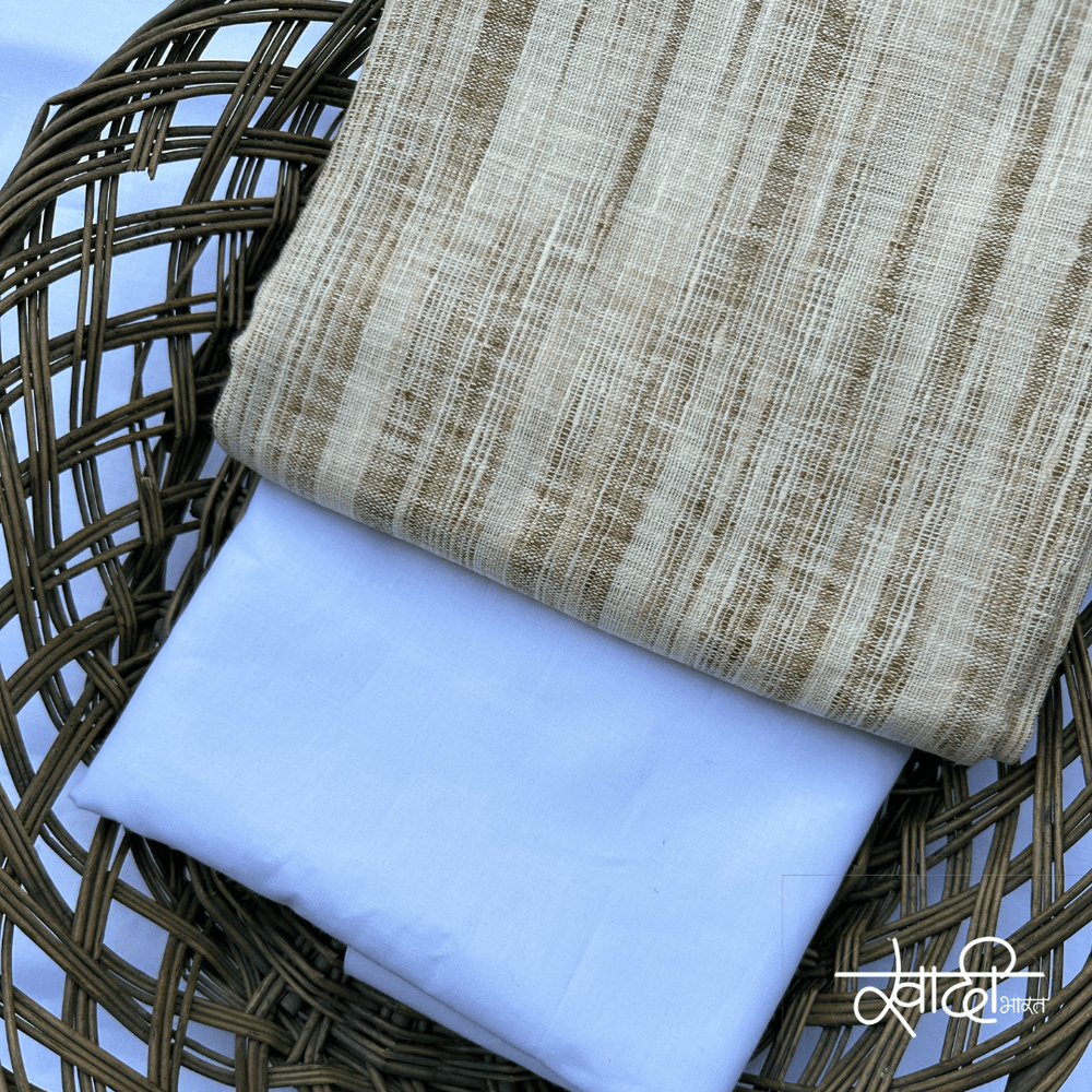 Khadi Kurta Pajama Fabric Combo Set - Unstitched Brown Traditional Khadi