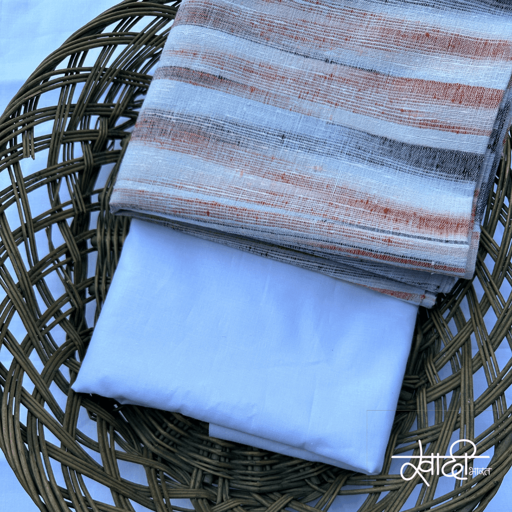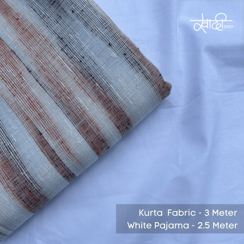 Khadi Kurta Pajama Fabric Combo Set - Unstitched Off Brown Traditional Khadi
