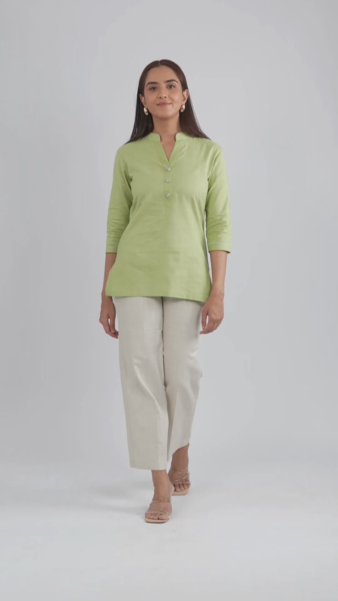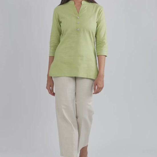 Khadi Short Kurti for Women - Sage Green Cotton - Khadi Sadan Skip to content