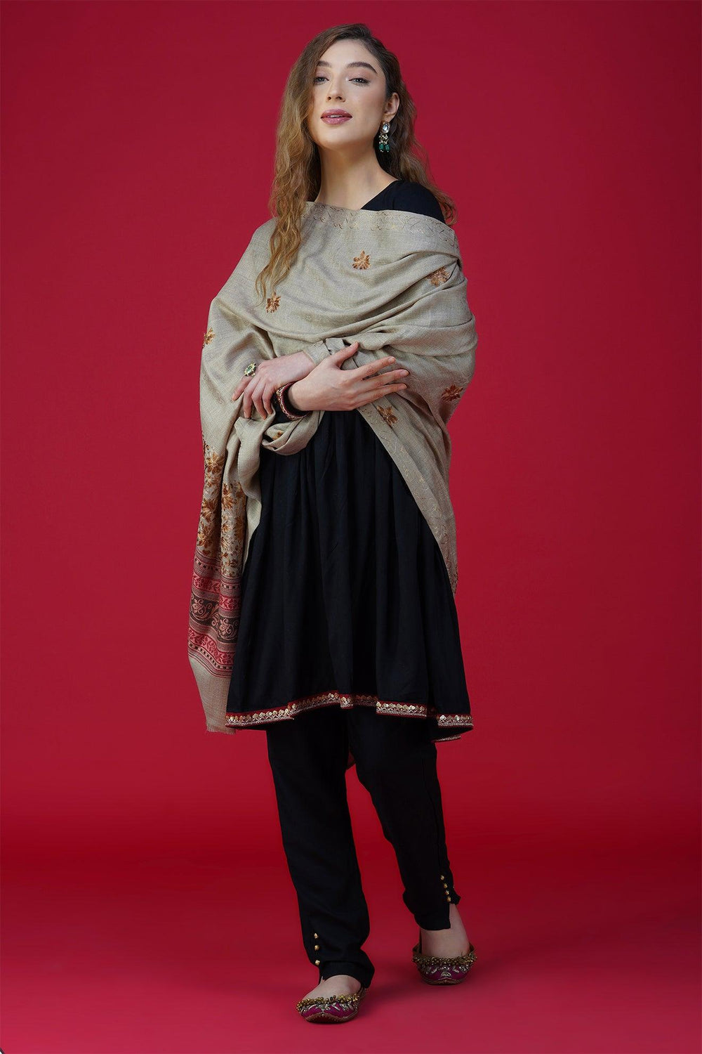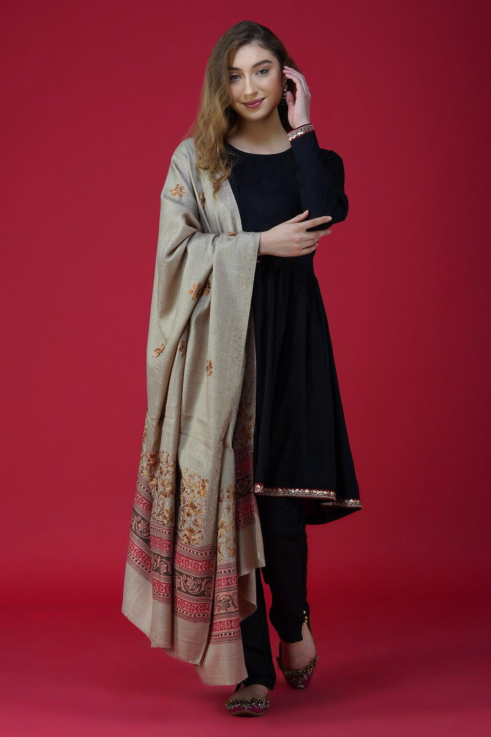 Magnificent Embroidered Pure Woolen Shawl ST-05 - Khadi Sadan