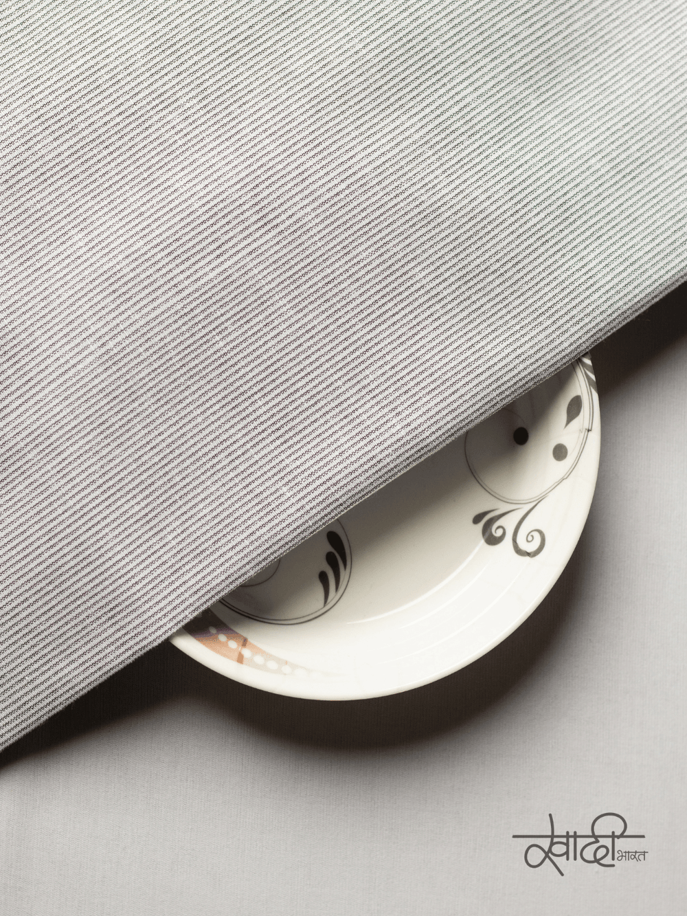 Small Plain Line White & Grey Traditional Khadi Fabric