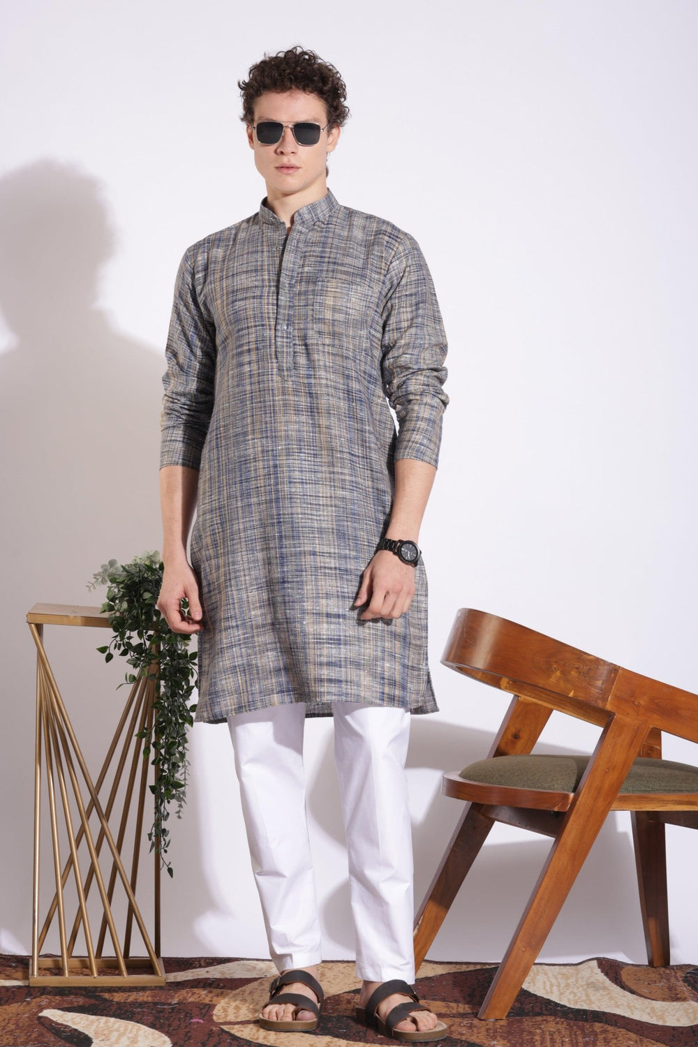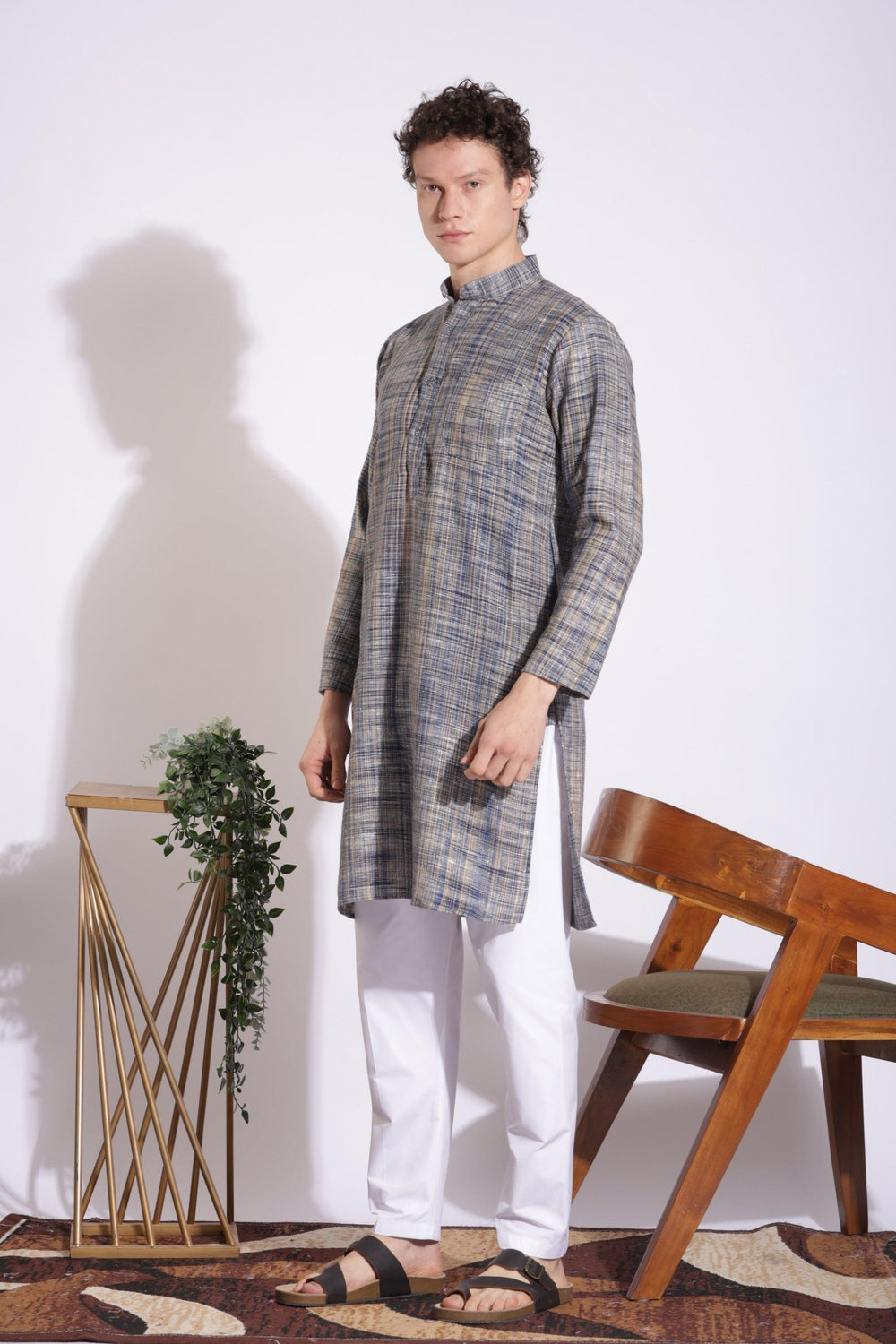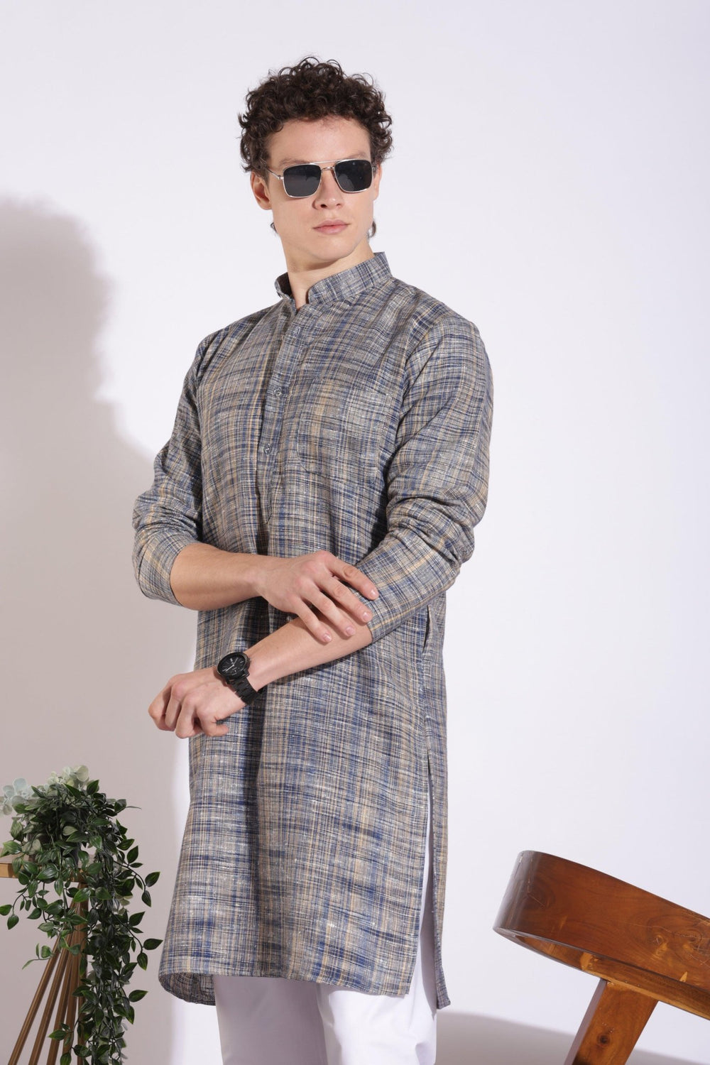 Elegant Blue Khadi Long Kurta - Khadi Sadan