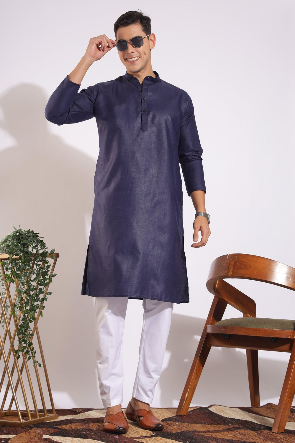 Trending Navy Blue Plain Kurta - Khadi Sadan