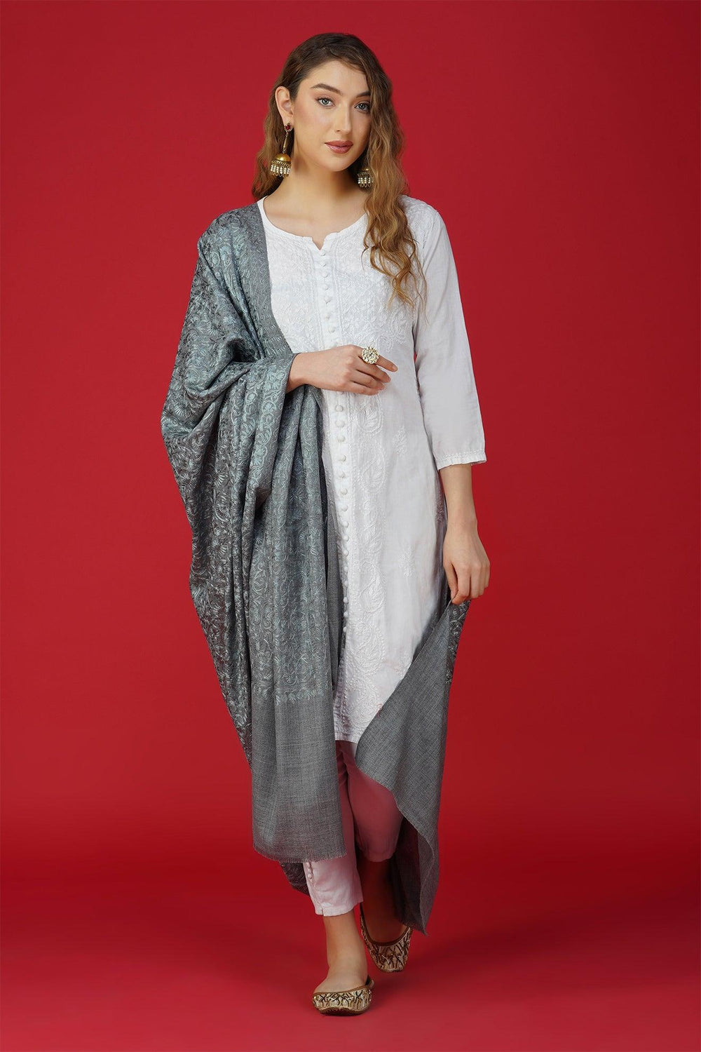 Vibrant Embroidered Pure Woolen Shawl ST-14 - Khadi Sadan