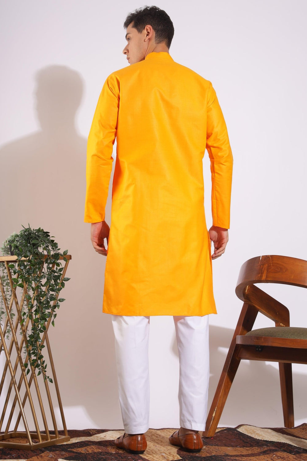 Traditional Yellowish Orange Plain Kurta